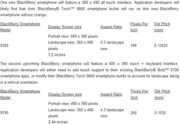 RIM, BlackBerry işletim sistemi için yazılım geliştirenlere hitap eden bir not yayınladı. İlginç olan, bu notta Kanadalı şirketin henüz duyurusu yapılmamış iki cihazı hakkında bilgilerin yer almasıydı.
