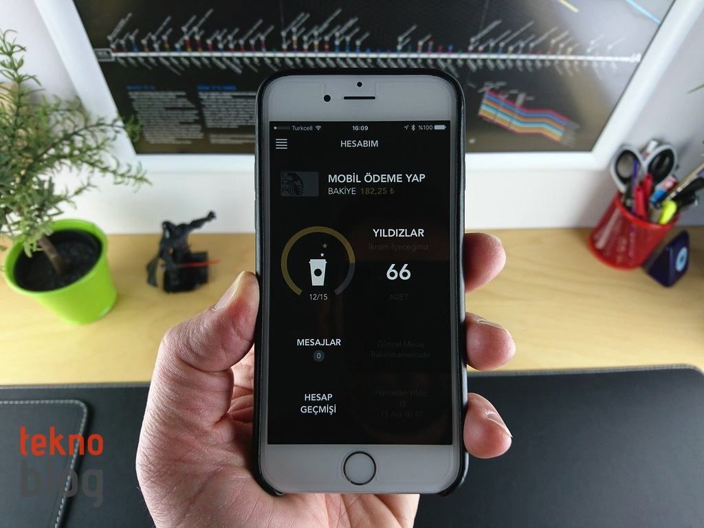 Uygulamaya giriş yapıldığında kullanıcıları Hesabım sekmesi karşılıyor. Bu sekme üzerinden kullanıcılar mobil ödeme yapabiliyor, kazandıkları yıldızların sayısını, uygulama tarafından kendilerine gönderilen mesajları ve hesap geçmişlerini görebiliyor. Mobil ödeme yap yazısına dokunulduğunda kullanıcılar Starbucks Card menüsüne yönlendiriliyor. Bu menü üzerinden kahvenin ödemesi yapılabildiği gibi, Starbucks Card’a para yüklemesi de gerçekleştirilebiliyor. Bu noktada uygulama üzerinden ödeme yapılabilmesi için Starbucks Card’da para yüklü olması gerektiğini hatırlatmakta fayda var.