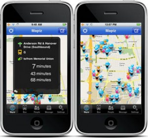 Mapiz, şu an ABD’nin önemli kampüsleri ve çevresindeki toplu taşıma ağlarını sistemine dahil ederek büyümekte. Sistemin işlemesi için elbette ulaşım hizmetini veren kuruluşların taşıt takip sistemi verilerini paylaşıma açmış olması gerektiğinin altını çizelim. Bildiğimiz kadarıyla, Türkiye’de büyükşehir belediyeleri birer birer otobüs takip sistemine geçmiş durumda; ancak aralarında konum verilerini kamuyla paylaşan olduğunu henüz duymadık. Ülkemiz için en azından bir iphone ve veri aboneliği gerektirecek bu uygulamanın hayata geçirilmesi durumunda bile ilk etapta otobüs tercih eden iphone sahipleri şeklinde tanımlanan çok kısıtlı bir kitleye hitap edeceği kuşkusuz. Ancak, kampüs pazarlama stratejileriyle genç kitleye son derece başarıyla ulaşabilmiş Apple ürününün ABD’de şimdiden popülarite kazandığını izleyebiliyoruz. Projenin filizlendiği üniversite şehri Davis’teki Unitrans ağının başarısını tecrübe etmiş ve saat tarifelerini pdf olarak Symbian cihazına aktarıp takip etmiş biri olarak, kaçırdığım bu treni açıkcası biraz kıskanıyorum.