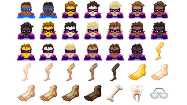 Yeni emoji karakter seçenekleri arasında Üşüyen Yüz, Terleyen Yüz, Eğlenen Yüz ve aynı zamanda farklı cilt tonlarında süper kahraman simgeleri bulunuyor. Korsan bayrağı, rakun ve bunun gibi 140 karakter daha bulunuyor. Tüm liste aşağıdaki galeride yer alıyor: