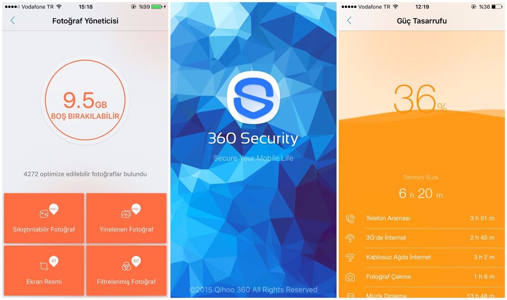 iPhone sahiplerinin depolama alanı problemi yaşamasında fotoğraflar bir numaralı neden olarak ön plana çıkıyor. Bir anda heyecanla çekilen ancak daha sonra unutulan fotoğraflar, bir köşede bırakılan ekran görüntüleri ve birbirlerinin aynısı görüntüler, özellikle 16 GB’lık iPhone’larda hafızayı sinsi sinsi işgal ediyor. Bu işgal, telefonların işlem gücünün de düşmesine neden oluyor. 360 Security, Fotoğraf Optimizasyon aracılığıyla kullanıcıların cihazındaki optimize edilebilir fotoğrafları hemen bulmayı ve yüzlerce fotoğraf arasında dolaşma zahmetini ortadan kaldırmayı vadediyor.
