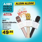 A101’de bu hafta Piranha’nın birbirinden eğlenceli aksesuarları satışa sunuluyor. Piranha Karaoke Mikrofon ile müziğin ve şarkı söylemenin tadını çıkarın. Bluetooth özelliği ile kablosuz kullanılan mikrofon, yankı efekti, bas/tiz kontrol, ses kayıt ve çift hoparlör çıkışına sahip. İki yıl garantili ürün, 49.95 TL’den satışa sunuluyor.