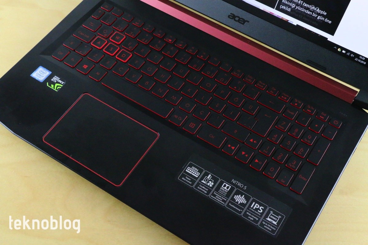 Klavye, Acer Nitro 5’in en güçlü özelliklerinden biri olarak öne çıkıyor. Ancak bu güç, açıkça ön plana çıkan bir farklılıktan kaynaklanmıyor.