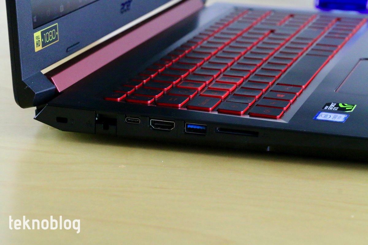 Sola geçildiğinde ise çok daha fazla sayıda giriş kullanıcıların karşısına çıkıyor. SD kart okuyucusu, USB 3.0, HDMI, USB 3.1, Gigabit Ethernet ve Kensington kilidi girişleri, Nitro 5’in sağ kenarındaki kadroyu oluşturuyor.