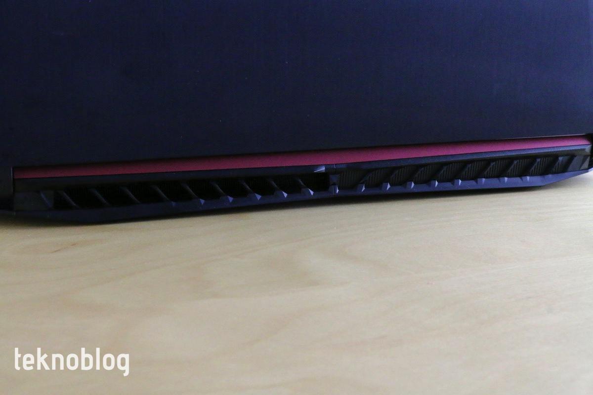 Acer Nitro 5’in en güçlü olduğu alanlardan biri olarak çift fanlı havalandırma ve soğutma sistemi öne çıkıyor. Dizüstü bilgisayarın arkasında bulunan havalandırma sistemi, pek sessiz çalışmıyor. Ancak bu sistemden çıkan sesin seviyesinin pek çok dizüstü oyun bilgisayarına kıyasla çok daha düşük olduğunu belirtmek gerekiyor.