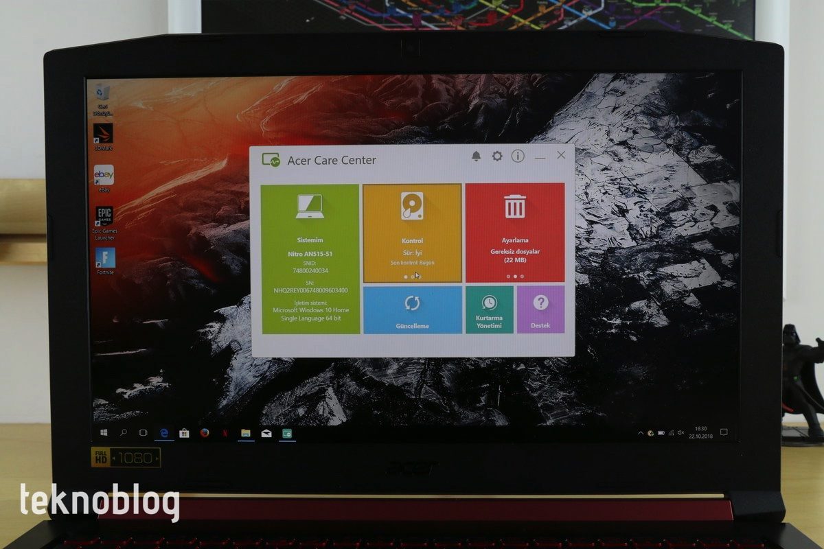 Acer Nitro 5, Windows 10 Home yüklü olarak kutusundan çıkıyor. Bu da işletim sisteminin standart özelliklerinin Acer Nitro 5’te de bulunması anlamına geliyor. Ancak bu özelliklere ek olarak, Acer’ın bazı özel uygulamaları da Nitro 5’te kullanıcıların karşısına çıkıyor.