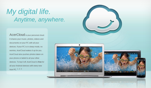 Acer, Berlin’de düzenlenen IFA 2012 kapsamında AcerCloud adlı bulut bilişim servisinin Avrupa’da faaliyete geçtiğini duyurdu. Bu servis kapsamında şirketin İngiltere, Fransa, Almanya ve İtalya’da piyasaya süreceği tüm dizüstü ve masaüstü bilgisayarlarda özel bir AcerCloud uygulaması yüklü olacak.