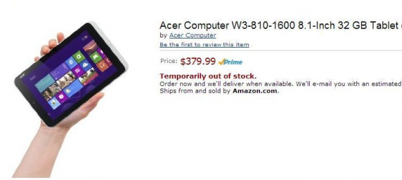 Acer’ın imzasını taşıyan W3-810-1600 isimli model 8.1 inç’lik bir ekrana sahip. Bu ekranın çözünürlüğü tıpkı Nexus 7’de olduğu gibi 1280 x 800. Cihazın özellikler listesine bakıldığında 1.5 GHz’lık A4 işlemci ve 2 GB RAM, 32 GB dahili hafıza ve 8 saatlik ömür sunan 3500 mAh pil bulunuyor. İşin bağlantı kısmındaysa sadece 802.11b/g/n’den bahsediliyor. 2 megapiksellik bir arka kameraya sahip olan tabletin ağırlığı yaklaşık 500 gram. Şu an için sadece gümüş renk seçeneğine sahip olduğu görülen cihazın ABD için belirlenmiş satış fiyatıysa 379.99 dolar. Hakkındaki bilgilerin şu an için bunlarla sınırlı olduğu cihazın sonbaharda satışa sunulacağı düşünülüyor.