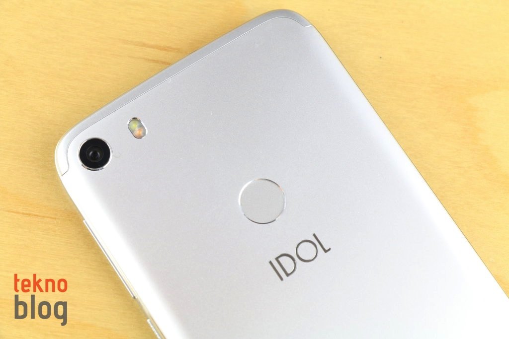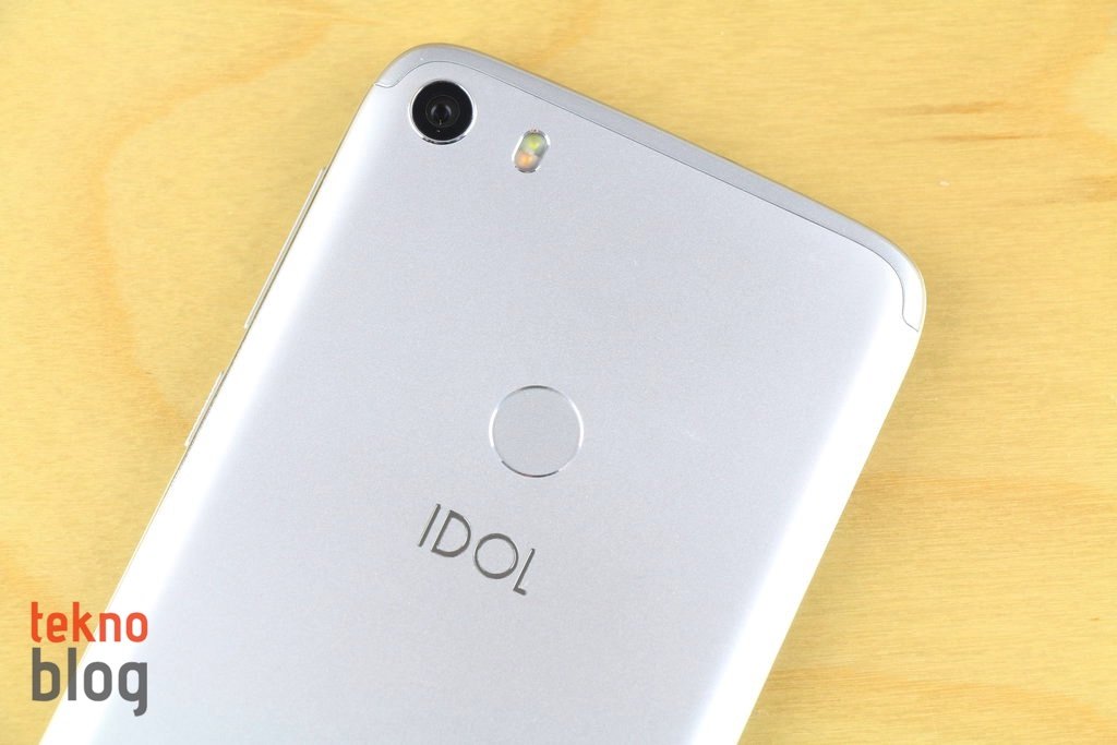 Bu tarayıcının biraz altında ise parlak IDOL yazısı yer alıyor. Arka panelin üst ve alt kenarlarındaki şeritler de ayrıca dikkat çekiyor. Panelin sol üst köşesinde 13 megapiksel çözünürlüklü kamera bulunuyor. LED flaş da kameraya eşlik ediyor.