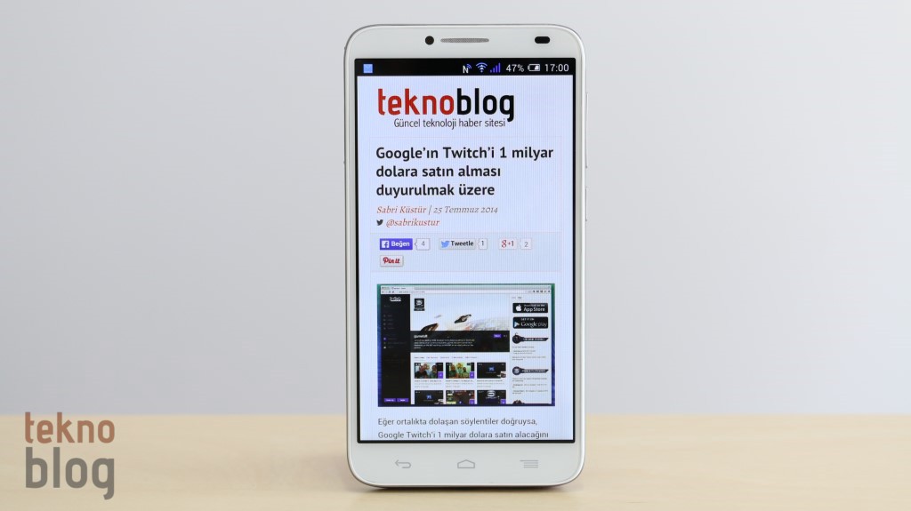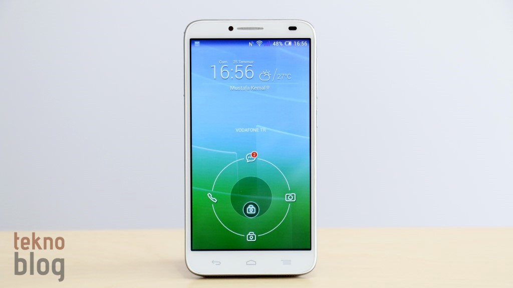 5 inç ekran, 540 x 960 piksel çözünürlüğe sahip. IPS LCD teknolojili bu ekranın görüş açıları fena değil. Parlaklık da tatmin edici seviyede. Ancak renk doygunluğu fazla, bu da ekranın doğallığını bozuyor. Çözünürlüğün düşük olmasına bağlı olarak piksel yoğunluğu da düşük, sonuçta pikseller seçiliyor, yazılar ve grafikler biraz daha bulanık görünüyor. Yine de, bunun kullanıcıların işini görecek bir görsel deneyim sunulmasına fazla engel teşkil etmediğini söylememiz gerekiyor.