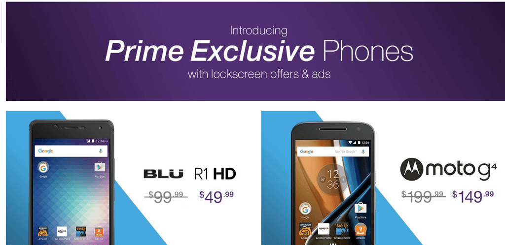 Amazon hali hazırda Fire tabletlerinde ve Kindle e-kitap okuyucularınında da kilit ekranında reklam gösterimi yapıyor. Reklam gösterimi karşısında fiyat indirimi yapılan ilk Android telefonlar ise Blu R1 HD ve dördüncü nesil Motorola Moto G oluyor. Bu tekliften faydalanmak için Amazon Prime abonesi olmak gerekiyor.