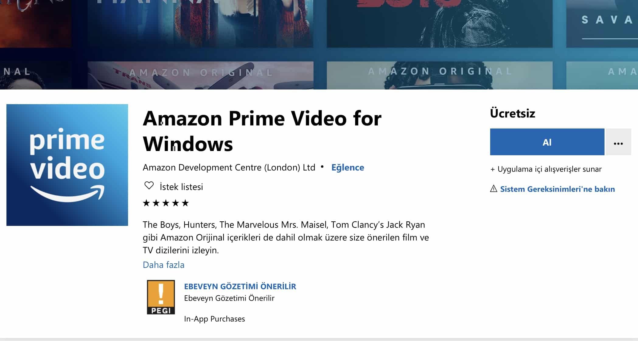 Windows 10 uygulaması ücretsiz olarak sunuluyor. Amazon Prime Video’nun Türkiye için abonelik bedeli aylık 5.99 avro. İlk bir ay için de ücretsiz deneme imkanı servis kapsamında sunuluyor.