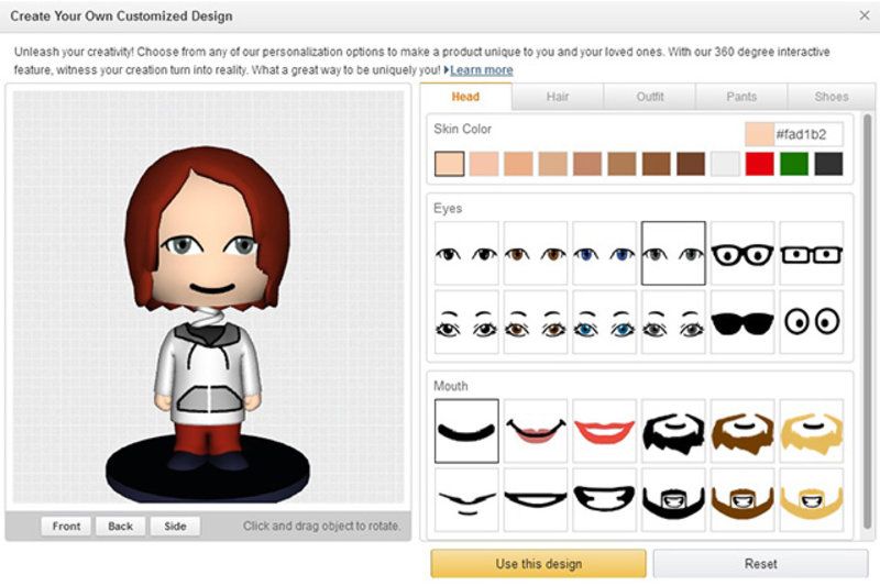 eBay’in ABD’de çevrim içi bir üç boyutlu baskı mağazası açmasının ardından harekete geçen Amazon, ”3D Printing Store” adını taşıyan çevrim içi mağazasıyla eBay’e yanıt verdi. 200’den fazla isteğe bağlı olarak basılan özel ürün barındıran mağaza, kullanıcılarına geniş bir kişiselleştirme imkanı sunuyor. Kişiselleştirilmiş köpek künyelerinden telefon kılıflarına, hatta özel balon kafalı figürlere kadar pek çok ürüne Amazon’un çevrim içi mağazası aracılığıyla ulaşılabiliyor. Üretim sürecine dahil olmayan Amazon, müşterilerini Sculpteo, Mixee Labs ve 3DLT gibi üç boyutlu baskı konusunda uzmanlaşan şirketlere yönlendiriyor.