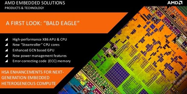 Dikkat çekilen yongalardan bir tanesi olan 35 watt x86 işlemci Bald Eagle oyun oynamak gibi performans gerektiren işler için tasarlanmış. En fazla dört Steamroller çekirdeği içeren bu yongaset Graphics Core Next yongaüstü mimarisinden de opsiyonel olarak yararlanacak.