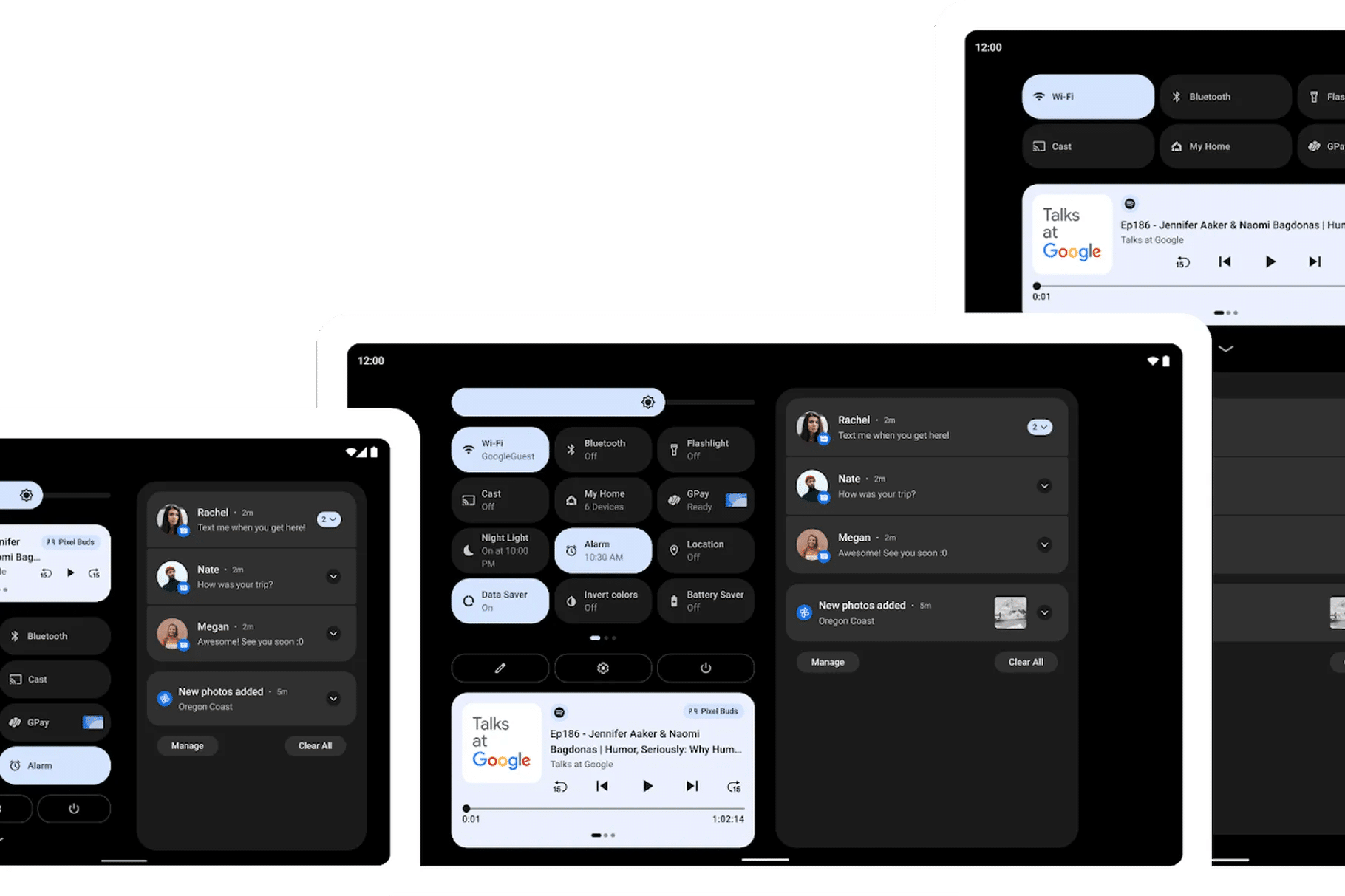 Android 12L ile Google, daha büyük ekranlı cihazlar için, tek seferde daha fazla bilgi almanızı sağlayacak iki sütunlu bir düzen ekliyor. Bu yeni düzen sayesinde hızlı ayarlarınız ve bildirimleriniz yan yana görüntülenebilir. Ayrıca Google, bir uygulamayı görev çubuğundan, uygulamalar arasında hızla geçiş yapmak için kullanabileceğiniz bölünmüş ekran moduna sürüklemenize izin vererek çoklu görevi deneyimini daha da iyileştirmeyi hedefliyor.