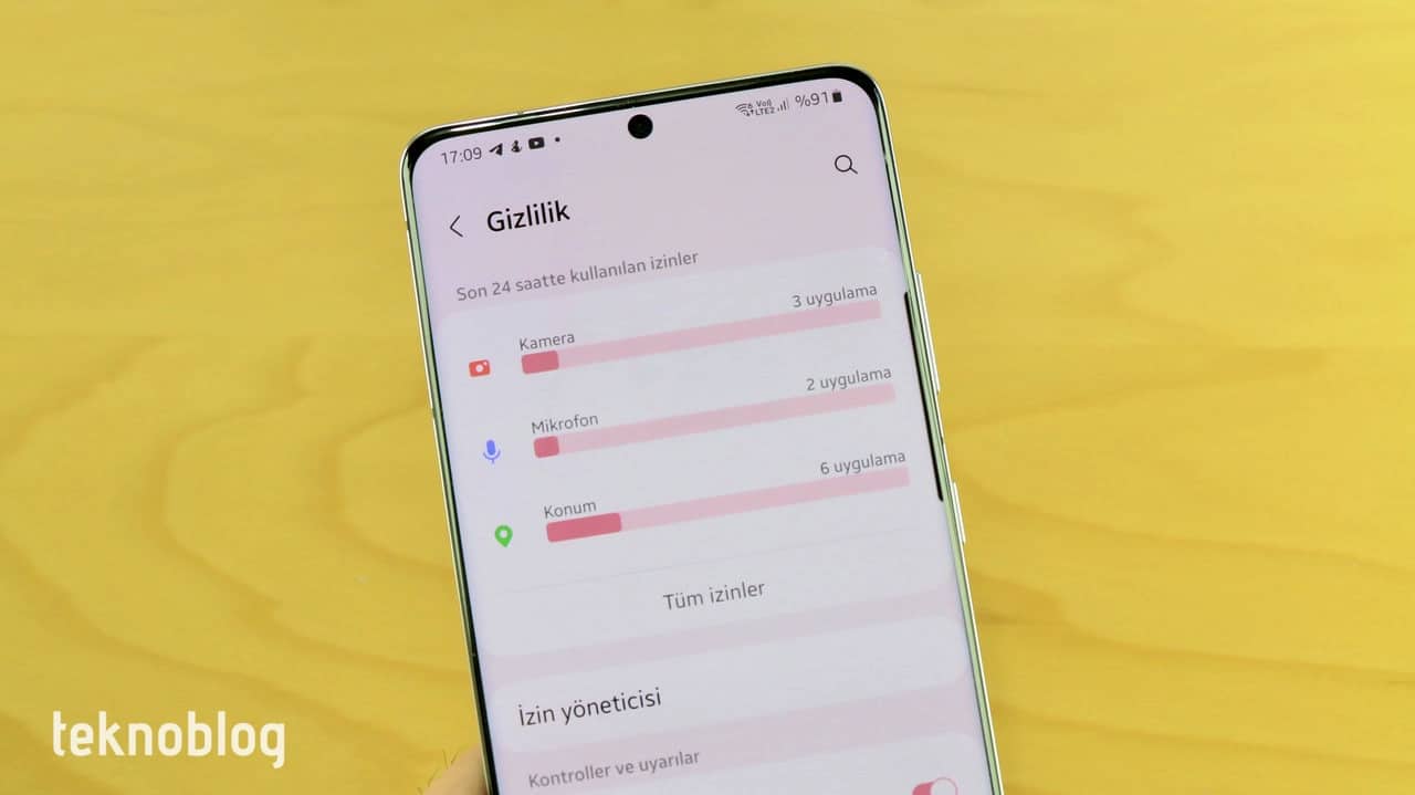 Yeni güncelleme ile birlikte Galaxy S21 Ultra yepyeni bir görünüm kazanıyor. Kullanıcı arayüzünde nadiren takılmalar görsek de, genel olarak Android 12 güncellemesi performans açısından herhangi bir sıkıntı çıkarmıyor. Gizlilik tarafındaki yenilikler de dikkat çekici, özellikle iPhone’larda gördüğümüz gibi, kamera veya mikrofon gibi unsurların kullanımı sırasında ekranın sağ üst köşesinde yeşil renkli bir işaret gösteriliyor.