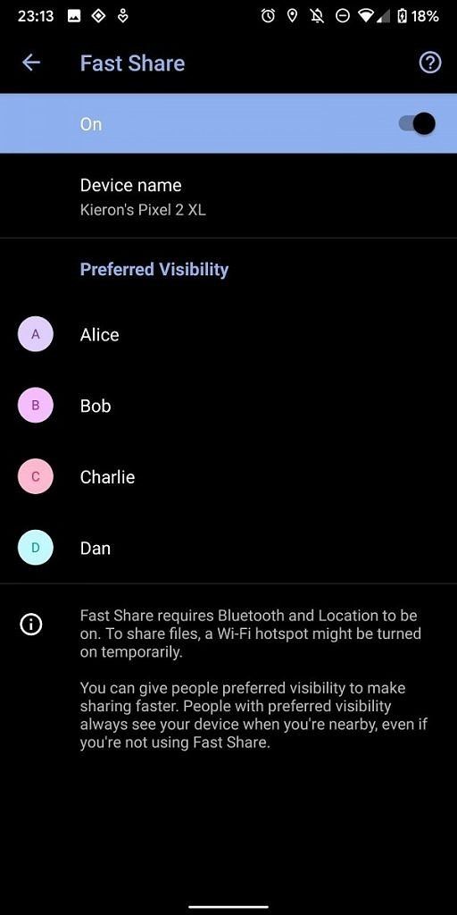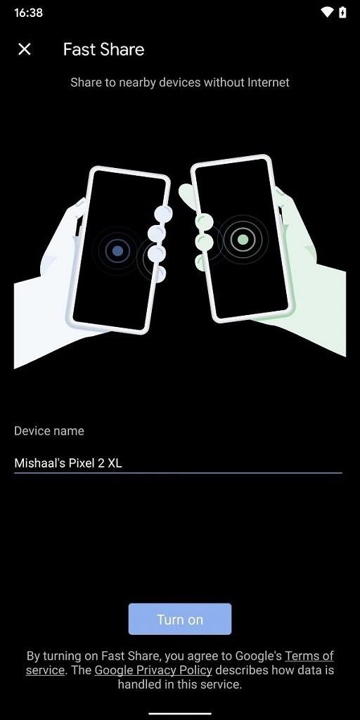 9to5Google ekibi, henüz test aşamasında olan Fast Share’i şimdiden aktif hâle getirmeyi başardı. Tıpkı AirDrop gibi, Fast Share de Wi-Fi ve Bluetooth’un bir kombinasyonunu kullanıyor. Fast Share sayesinde Android cihazlar arasında birkaç dokunuşla dosya paylaşımı yapmak mümkün hâle geliyor.
