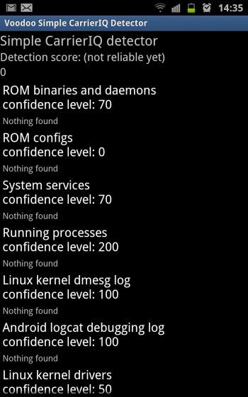 Carrier IQ adı verilen izleme yazılımıyla ilgili iddialar mâlum, bu konuyla ilgili olarak üreticiler ve mobil operatörlerden çeşitli açıklamalar da geldi. Carrier IQ’nun cihazlarında varolup olmadığından şüphelenen Android cihaz kullanıcıları için bir uygulama yayınlandı. Android uygulama geliştiricisi supercurio’nun elinden çıkmış olan Voodoo Simple Carrier IQ Detector uygulaması kullanıcılara bunu test etmeleri için bır fırsat sunuyor.