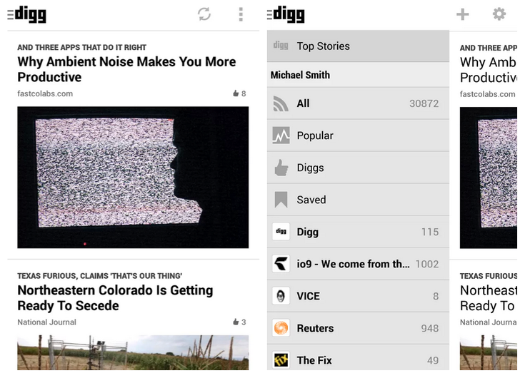 Tıpkı Digg’in web versiyonunda olduğu gibi, Android uygulaması da özel olarak seçilen kaynaklarla oluşturulan Digg’in ana sayfasından anlık haber akışı sağlıyor. Buna ek olarak, kullanıcılar Digg’in Google Reader’a alternatif olarak oluşturduğu RSS servisi Digg Reader’a erişebiliyor. Uygulamada kullanıcılar kaydırma işlemiyle bölümler arasında geçiş yaparken, hikayeleri daha sonra saklamak üzere Instapaper, Pocket veya Readability gibi uygulamalara gönderebiliyor; aynı zamanda Facebook ve Twitter gibi mecralar üzerinden paylaşabiliyor. Android için Digg uygulamasına ilgili kısmındaki Google Play bağlantısı üzerinden ulaşabilirsiniz.