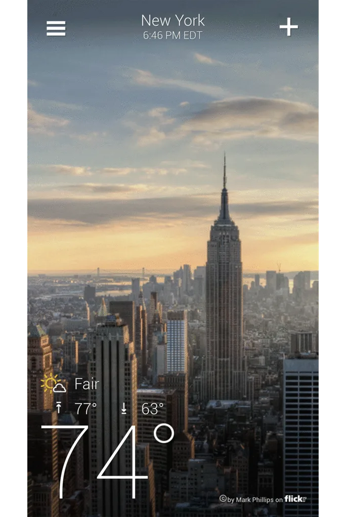 Yahoo’nun geçtiğimiz nisan ayında yenilediği hava durumu uygulamasının iOS versiyonu tasarımı ve kullanışlılığıyla pek çok kişinin beğenisini kazanmıştı. Hatta Apple da iOS 7 için hazırladığı hava durumu uygulamasında Yahoo’dan esinlenmiş ve WWDC’de Yahoo’yu tasarım ödülüne layık görmüştü. Yahoo iOS’te bir hayli popüler olan hava durumu uygulamasını şimdi de Android kullanıcılarını beğenisine sundu.