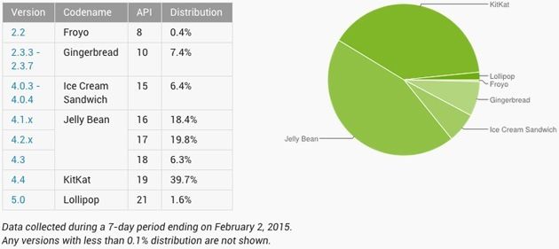 Google tarafından açıklanan resmi rakamlara göre, Android Lollipop şubat ayının başı itibarıyla aktif Android kullanıcılarının yüzde 1.6’lık kısmına ulaştı. Bu oran çok yüksek olmasa da; şu an için sadece Nexus telefonların ve HTC, LG ve Motorola’nın bazı modellerinin güncellemeyi aldığı düşünülünce istatistiklere girmek bir başarı olarak nitelenebilir.