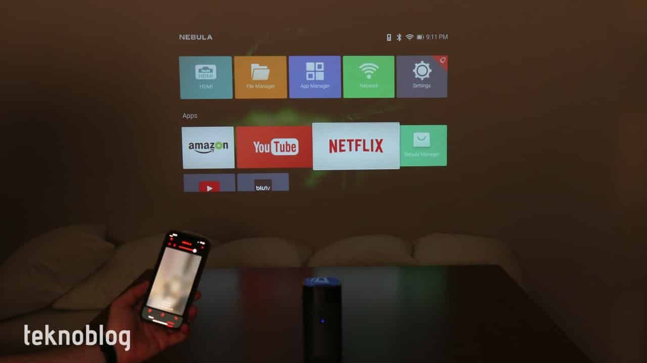 Söz bağlantıdan açılmışken, Nebula Apollo’nun kablosuz multimedya protokol desteğinin de memnun edici olduğunu belirtelim. Medyanızı büyük ekrana yansıtmak için HDMI veya USB portlarını kullanabileceğiniz gibi, AirPlay, Miracast veya Bluetooth bağlantıları yardımıyla kablosuz olarak da izleyebilirsiniz. AirPlay desteği iPhone ve iPad sahiplerinin epey hoşuna gidecektir. Benzer şekilde, Android ve Windows kullanıcıları için de Miracast desteği fazlasıyla kullanışlı olacaktır.