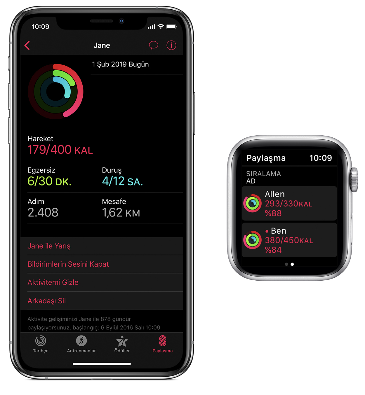 Bunun için iPhone’unuzda 3 renkli halkadan oluşan Fitness (Aktivite) uygulamasına tıklayıp sağ alt köşedeki Paylaşma butonuna basmanız gerekiyor. Rehberinizde kayıtlı olup Apple Watch’u olan tüm arkadaşlarınızı takipe davet edebilirsiniz. Bu takipleşmeyi dilediğiniz zamanda da bitirebilirsiniz. Detayları bu bağlantıda bulabilirsiniz.