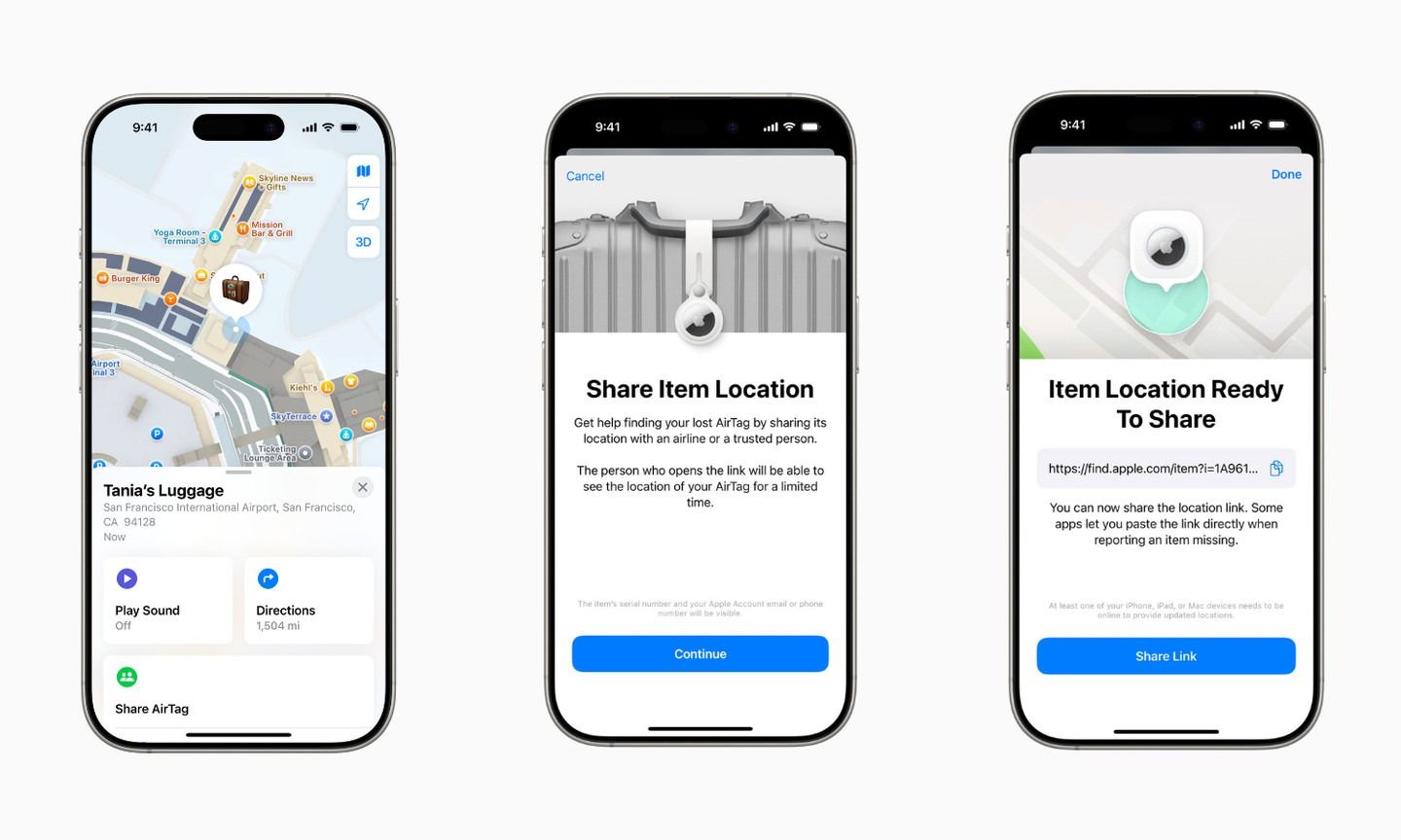 Yeni özellik ile kullanıcılar, kaybolan eşyalarının yerini gösteren bir bağlantı oluşturabiliyor ve bu linki ilgili kişilere ya da kurumlara iletebiliyor. Paylaşılan bağlantıya erişen kişi ya da kuruluş, etkileşimli bir harita üzerinden kayıp eşyanın son görüldüğü yeri inceleyebiliyor. Apple’ın sistemi, kayıp eşya bir yerden başka bir yere taşındığında konum bilgisini otomatik olarak güncelleyerek eşyanın son hareket ettiği zamanı da belirtmekte.