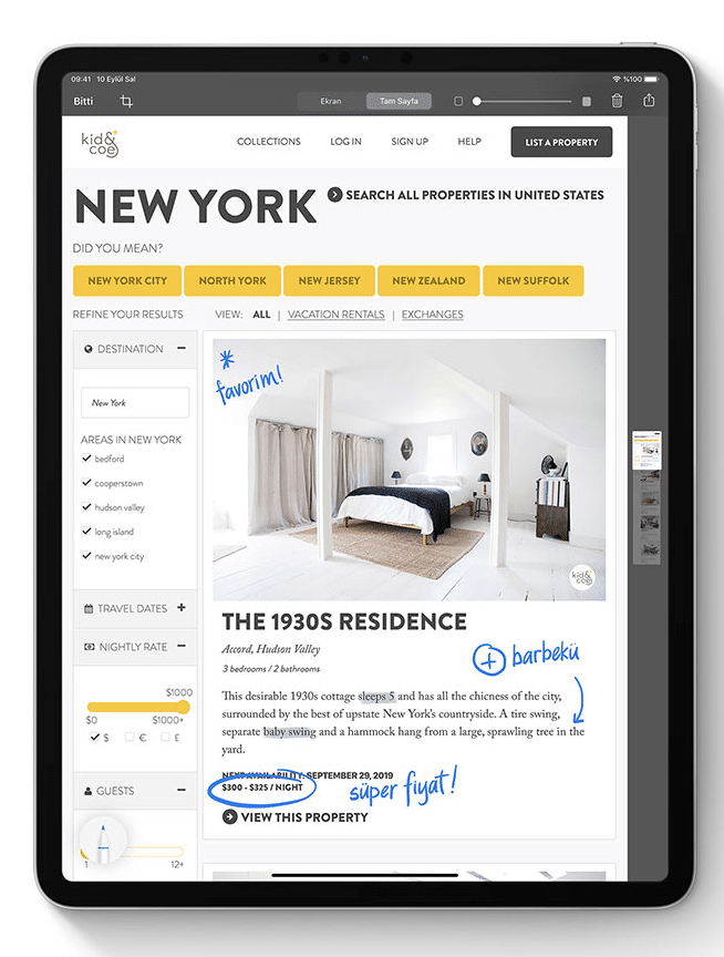 Apple Pencil‘ı iPad ekranının alt köşelerinin birinden yukarı doğru kaydırarak kolayca bir ekran görüntüsü alabilir ve ekranı işaretlemeye başlayabilirsiniz.