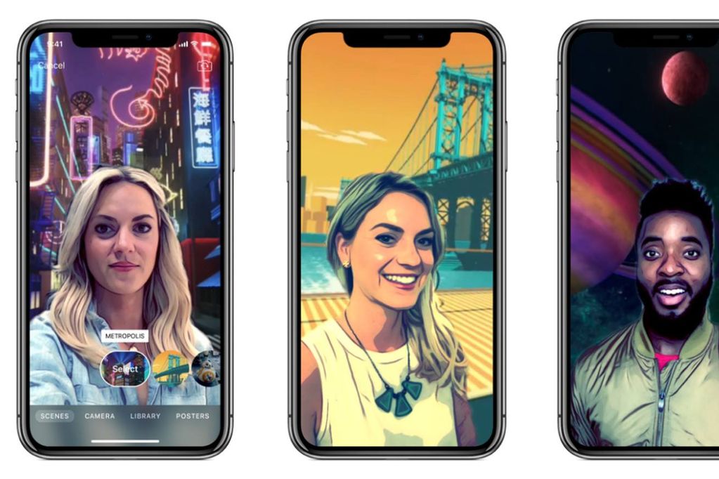 Clips, iPhone X’daki TrueDepth kamerayı da kullanarak arka planı kaldırıyor ve kullanıcıları animasyonlu, 360 derece ortamlara yerleştirerek büyüleyici ve yepyeni bir selfie video türü oluşturuyor. Bu Selfie Ortamları ile kullanıcılar kendi görüntülerini uçsuz bucaksız manzaralara, sanat eserlerinin içine, hatta Yıldız Savaşları: Son Jedi‘daki Millennium Falcon ve Mega-Destroyer’a yerleştirebiliyorlar.