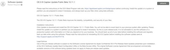OS X 10.11.1 public beta sürümünün yayın notlarında geçtiğimiz hafta yayınlanan sürüme kıyasla farklı bir nokta bulunmuyor. Bu da sürüm numarasının geçtiğimiz hafta yayınlanan geliştirici sürümüyle büyük ölçüde aynı olacağını gösteriyor. El Capitan, genel yapısı itibarıyla OS X deneyimini tamamen değiştirmekten ziyade Yosemite ile sunulan deneyimin optimizasyonu ve parlatılması üstüne odaklanıyor.