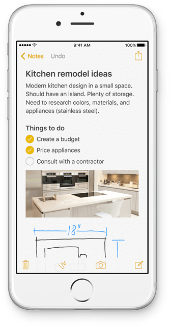 Başlangıçtan beri iOS’te mevcut olan ve şimdiye kadar fazla yenilik görmeyen Notlar uygulaması iOS 9 ile birlikte şimdiye kadar görmediği kadar fazla yenilik kazanacak. Görsel ekleme, kontrol listeleri, çizimler gibi yeni özellikler Notlar uygulamasına geliyor. Böylelikle Apple’ın yerleşik not alma uygulaması Evernote benzeri servislerle daha iyi rekabet edecek.