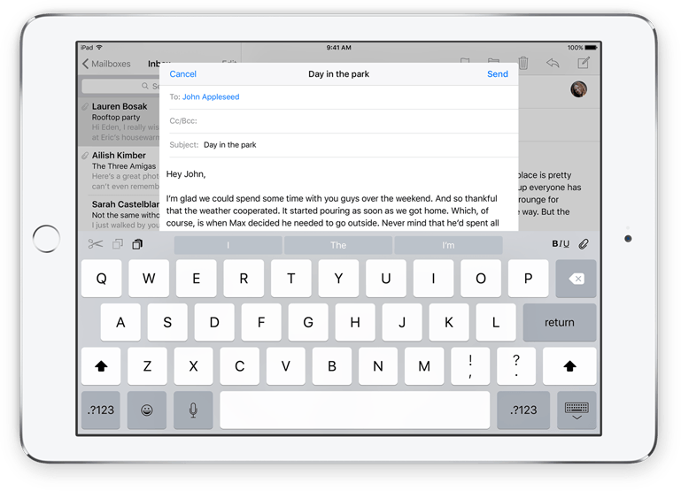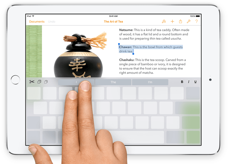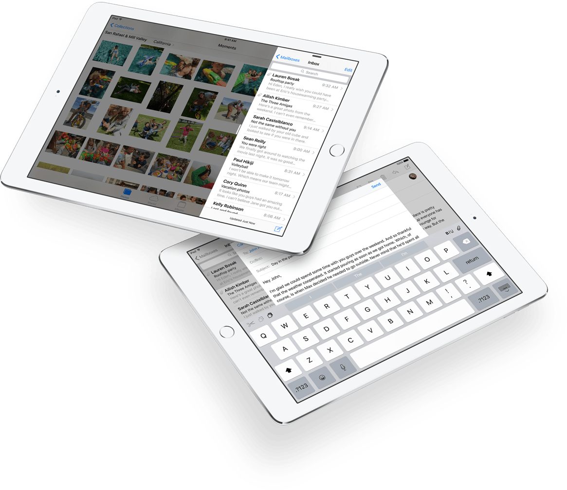 iOS 9 ile birlikte iPad için tasarlanan çeşitli üretkenlik artırıcı işlevler de bulunuyor. Örneğin ekran klavyesi kes, kopyala, yapıştır gibi işlevler için özel kısayollar içeriyor. Ancak bundan önemlisi, iOS 9 ile birlikte iPad için yeni bir çoklu görev modu sunulacak. iOS 9 aynı anda iki uygulamanın yan yana çalıştırılmasına izin veriyor. Buna benzer özellikler Microsoft’un Surface tabletlerinde ve Samsung’un Galaxy tabletlerinde uzun zamandır bulunuyor.