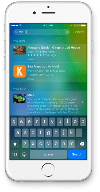 Öte yandan iOS 9 Spotlight aramalarıyla daha derin bağlantılar kuruyor, sistem genelinde arama yaptığınızda uygulamalar içinden de içerikler gösteriyor, sadece uygulamanın ana sayfasını açmakla kalmıyor. Ayrıca Spotlight web aramasını açmadan birim dönüştürmeleri yapabiliyor, Siri bunu bir süredir yapabiliyordu, ancak artık sadece söylemek yerine yazarak da dönüştürme yapabileceksiniz.