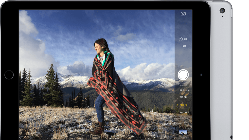iPad Air 2’nin kamerası da en önemli özelliklerden biri olarak nitelendiriliyor. Apple’ın iPad Air 2 tanıtımında ürünün sunumunu gerçekleştiren yönetici Phil Schiller, iPad’in ekranını fotoğraf ve video çekimi için en iyi vizör olarak nitelendirirken, üçüncü taraf uygulamalar da iPad Air 2’nin kamerasının avantajlarından yararlanacak. 8 megapiksel çözünürlüğe sahip iSight kamera 1.12 mikron piksel boyutu, f/2.4 diyafram açıklığı ve 1080p Full HD video kayıt gibi özelliklere sahip. A8X’e entegre edilen görüntü işlemcisi sayesinde iPad Air 2 ile etkileyici fotoğraflar ve videolar çekmek mümkün olacak. Ayrıca Ağır Çekim özelliği iPad Air 2’de de bulunacak.