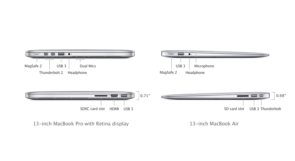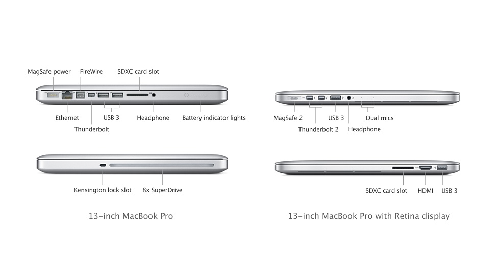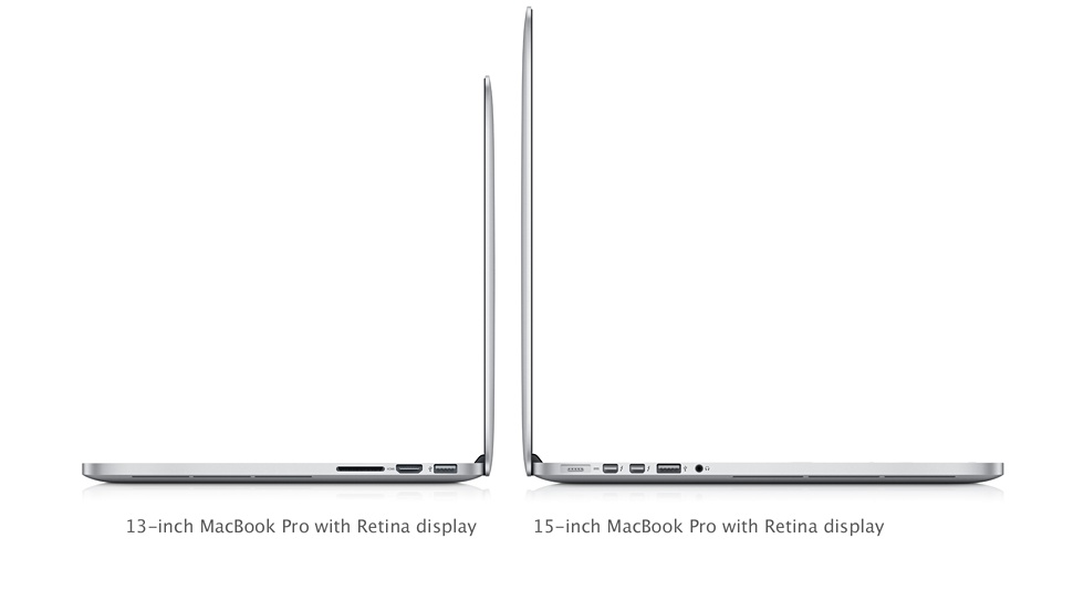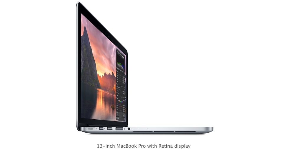13 inç model 1.8 cm. kalınlık ve 1.57 kg. ağırlığıyla selefinden daha ince ve daha hafif olarak geliyor. Temel modeli 1299 dolardan başlayan fiyatla satılacak olan 13 inç MacBook Pro Retina’da 128 GB kapasiteli SSD hafıza bulunuyor.