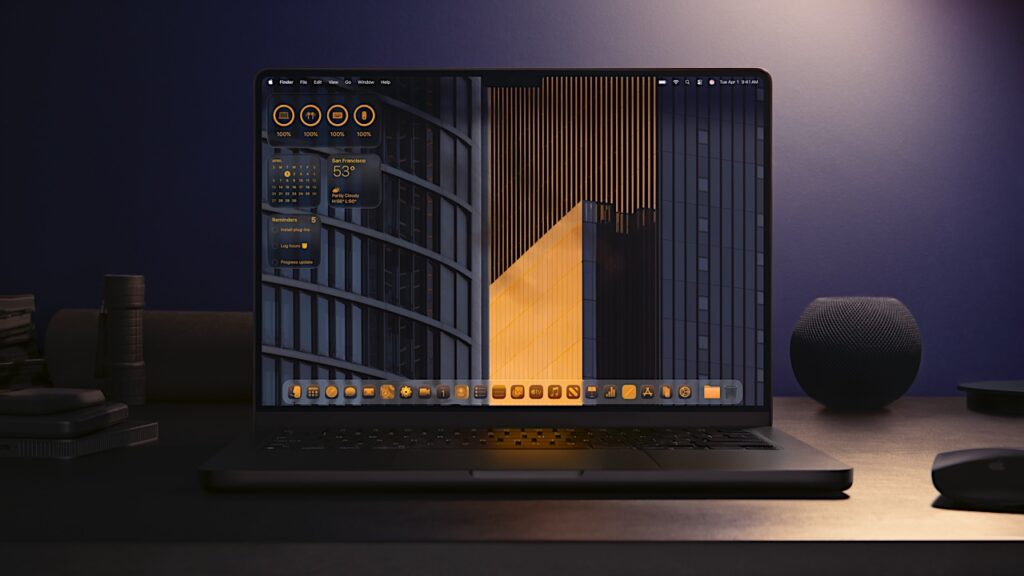 Sistem genelinde kullanılan görsel malzeme, Apple tarafından Liquid Glass olarak adlandırılan yeni bir tasarım diliyle şekillendirilmiş durumda. Bu malzeme, ışıkla etkileşimi ve yarı saydam yapısıyla öne çıkıyor. Menü çubuğunun tamamen şeffaf hâle getirilmesiyle ekranın kullanım alanı görsel olarak genişletilmiş. Dock, araç çubukları ve uygulama kenar panelleri ise yeniden düzenlenerek içeriğe odaklı bir yapı kazandırılmış. Bu yapısal dönüşümle birlikte kullanıcılar artık klasör renklerini değiştirebiliyor, simgelere emoji ve semboller ekleyebiliyor.