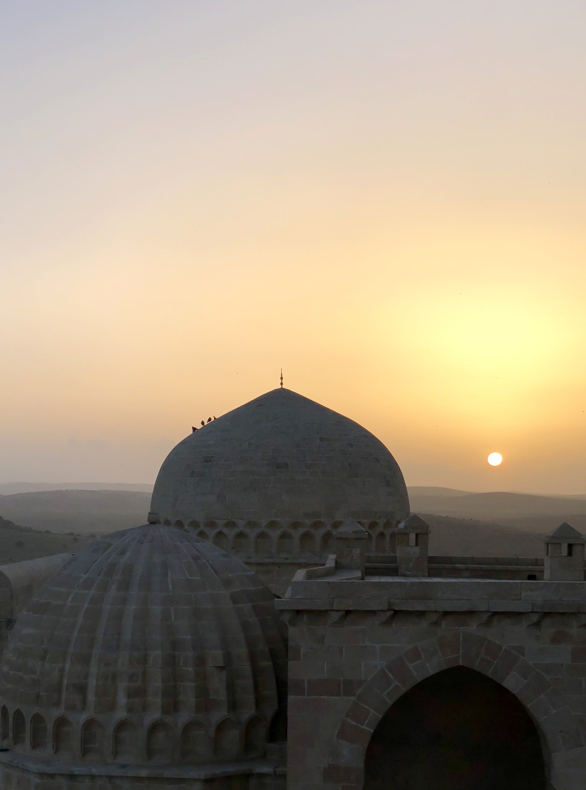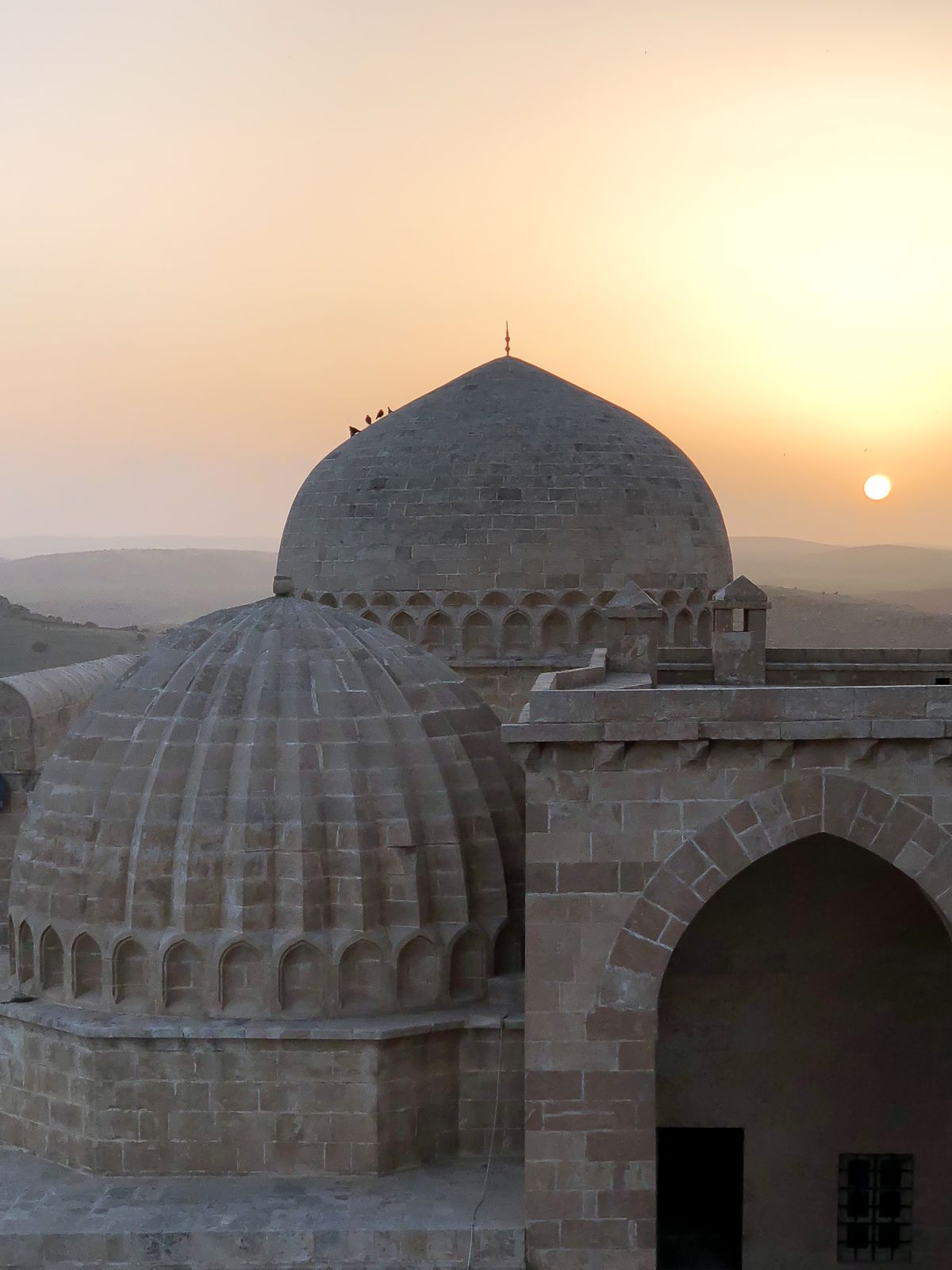 Mardin’deki son akşamımı Kasimiye Medresesi’nde gün batımını fotoğraflayarak değerlendirmek istedim. Bu nedenle kapanış saatine yakın gittiğimde öğrendim ki o müthiş manzara ancak çatıdan izlenebiliniyor ve o gün orada özel bir çekim olduğu için yukarı çıkılmasına izin verilmiyormuş.