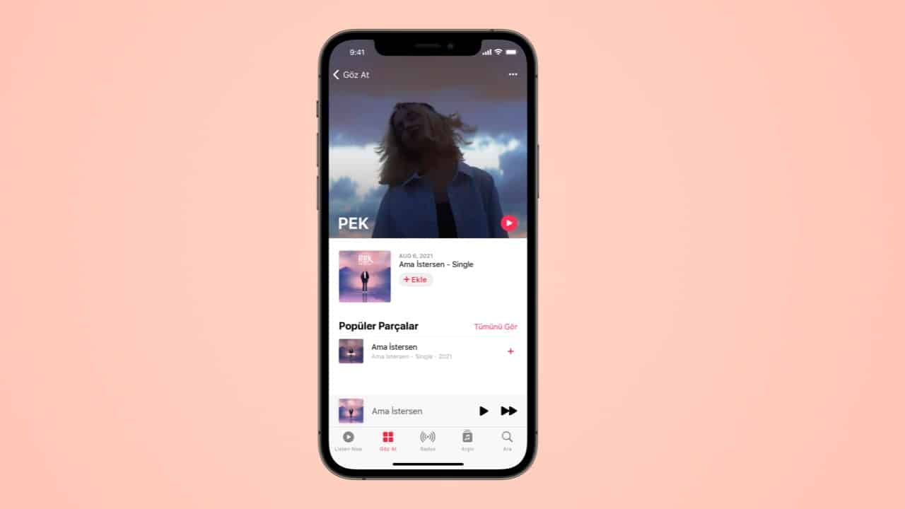 Apple Music’in yükselen yetenekleri belirlemeye, sergilemeye ve yükseltmeye yönelik aylık sanatçı girişimi olan Yıldızı Parlayanlar programının eylül ayı konuğu PEK oluyor. Sanatçının ağustos ayında yayınlanan ilk teklisi Ama İstersen‘in video klibi yönetmen Ali Demirel tarafından iPhone 12 Pro Max ile çekildi.