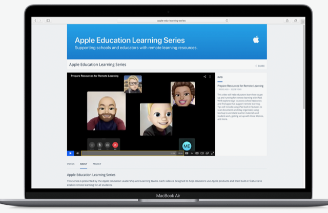 Pandemi dönemiyle beraber Apple, okulların ve eğitimcilerin Apple aygıtlarında uzaktan öğrenim olanaklarından en iyi şekilde yararlanmalarına yardımcı olmak için tasarlanmış bir video koleksiyonu olan Apple Education Learning Series‘i kullanıma sundu. İngilizce olarak yayınlanan bu videolar, eğitimcilere iPad?lerini hazır ve çalışır duruma getirmeleri için yardımcı oluyor, nasıl etkileyici eğitim videoları oluşturabileceklerini ve uzaktan birlikte çalışabileceklerini gösteriyor. Eğitimciler bunun devamında bu konularda Apple Professional Learning uzmanları tarafından yönetilen sanal konferanslara katılabilirler.
