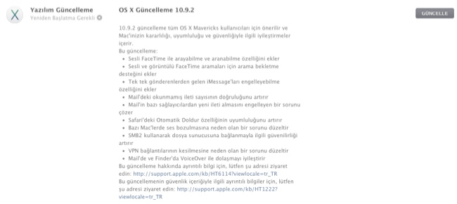 OS X 10.9.2, Apple’ın Ekim 2013’te yayınladığı OS X Mavericks işletim sistemi için yayınladığı ikinci büyük güncelleme özelliğini taşıyor. Güncellemeyi Mac App Store altında bulunan Güncellemeler sekmesi içinde görebilirsiniz.