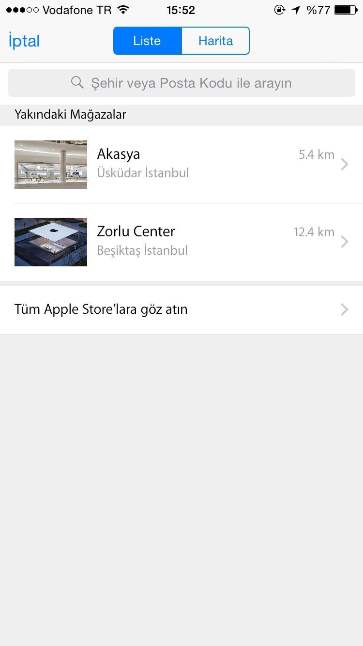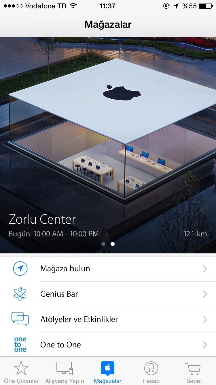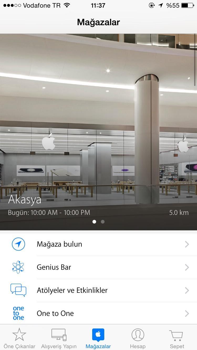 Apple Store uygulamasının mağazalar sekmesindeyse Apple’ın Akasya ve Zorlu Center’daki fiziksel mağazalarına dair bilgilere erişilebiliyor. Bu sekmedeki mağaza sıralaması coğrafi yakınlık kriteri çerçevesinde yapılıyor. Apple mağazalarında verilen Genius Bar, One to One gibi hizmetler için Apple Store uygulaması aracılığıyla randevu alınabiliyor. Mağazalarda düzenlenen atölye ve etkinliklere katılım kaydı oluşturmak ve etkinlik programını görmek için de Apple Store uygulamasına göz atmak yeterli oluyor.