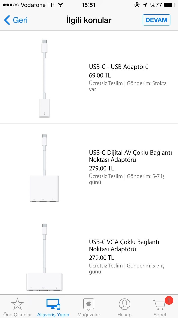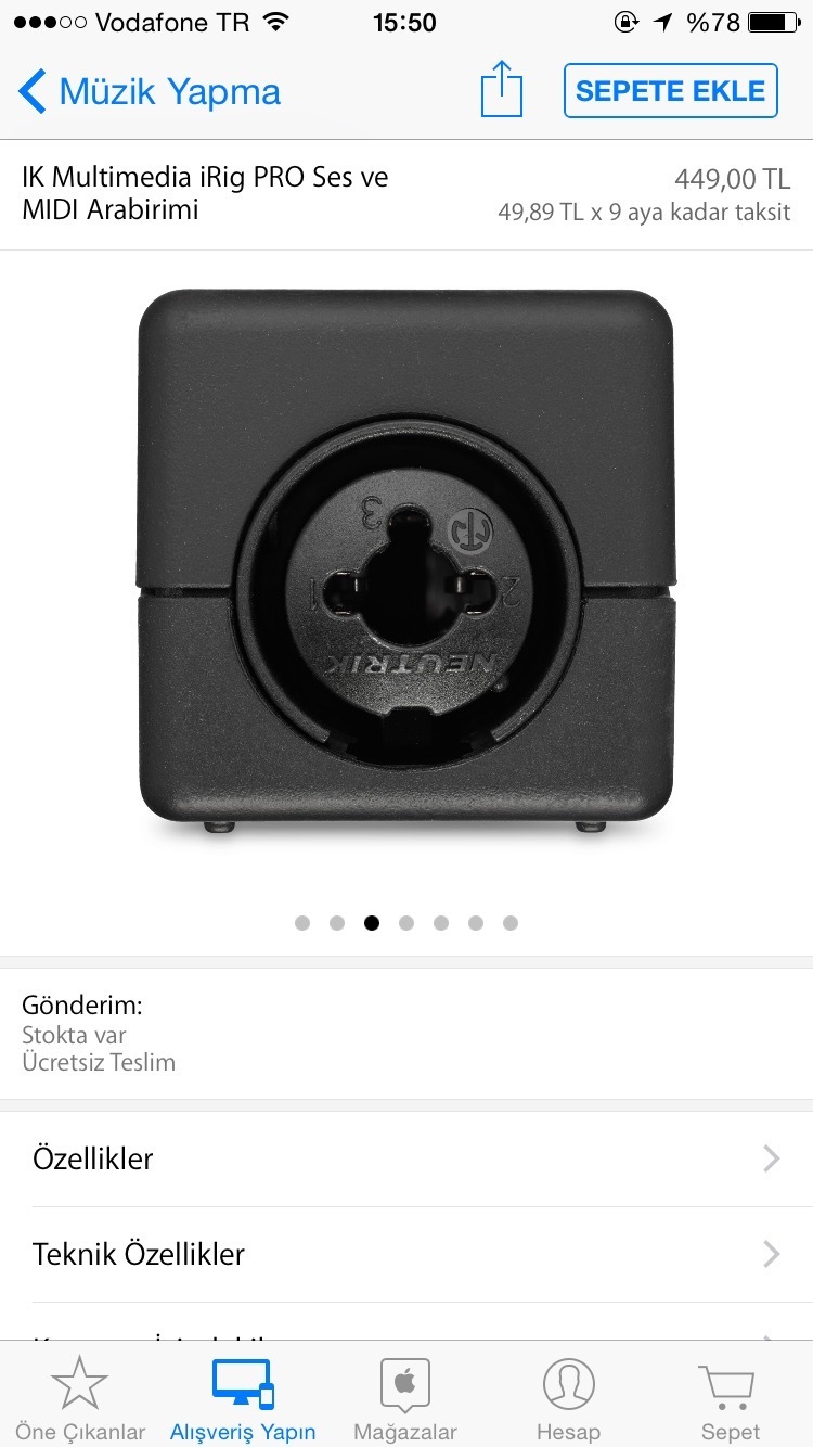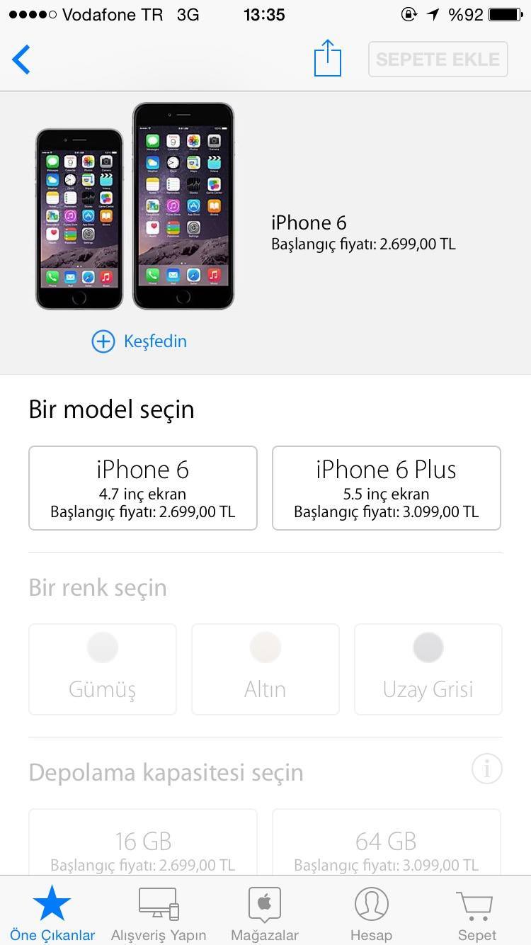 Kullanıcılara satış sayfasında ürünün detaylı fotoğraflarını ve 360 derecelik görünümünü inceleme fırsatı veriliyor. Cihazın teknik özellikleri ve kutusundaki diğer aksesuarlar da, bu sayfada yer alan sekmeler aracılığıyla görülebiliyor. Konfigürasyonun yapılmasının ve ürünün sepete eklenmesinin ardından kullanıcılar “İlgili Konular” başlıklı bir sekmeye yönlendiriliyor. Bu sekmede alınan cihaza uygun aksesuar önerileri kullanıcılara sunuluyor. Ürün seçimlerini tamamlayan kullanıcıların bir sonraki durağı Apple Store’un Sepet sekmesi oluyor.