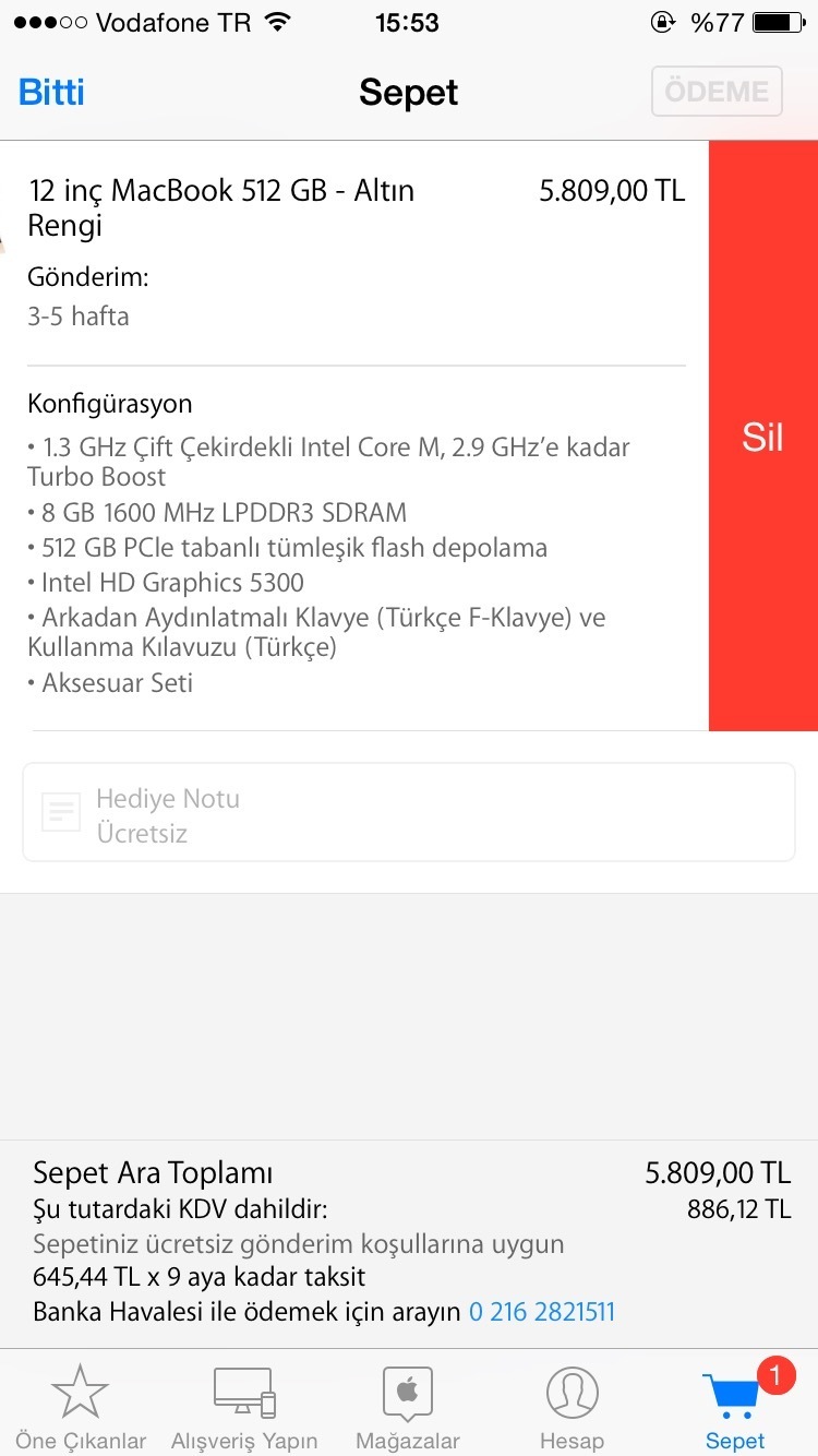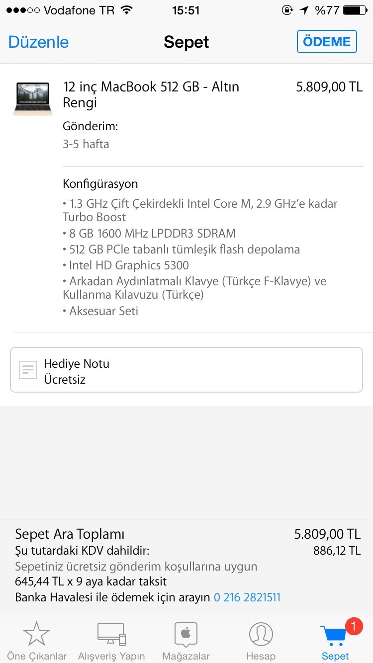 Sepet sekmesinde kullanıcılar siparişlerini tamamlamadan önce bir kez daha gözden geçirebiliyor. Ödeme komutunun verilmesinden önce ise kullanıcılardan Apple ID’lerinin şifresini girmeleri isteniyor. Böylelikle satış için bir ön doğrulama yapılmış oluyor.