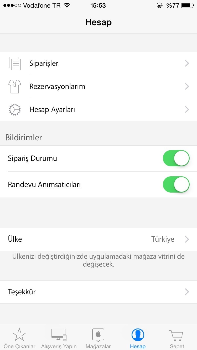 Apple Store’un Hesap sekmesindeyse kullanıcılar siparişlerini, rezervasyonlarını ve hesap ayarlarını görüntüleyebiliyor. Fatura ve teslimat adresleri, uygulamanın hesap ayarları sekmesi aracılığıyla düzenlenebiliyor. Sipariş durumu ve randevu anımsatıcıları gibi bildirimlerin aktifleştirilmesi de Hesap sekmesi üzerinden gerçekleştirilebiliyor.