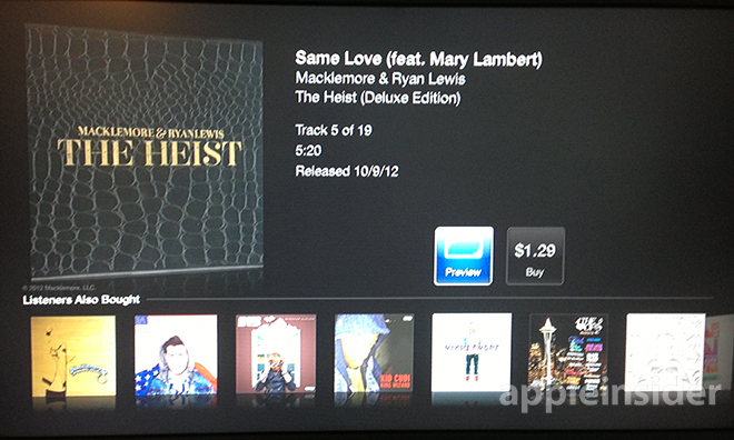Apple Insider tayfası yeni beta sürümüyle bu imkanı deneyimlemiş ve aldıkları ekran görüntülerini paylaşmışlar. Şu anda Apple TV’nin mevcut sürümünde yer alan Müzik bölümüne benzer bir kullanıcı arayüzüne sahip olduğu görünen şarkı satın alma özelliği kapsamında iTunes Store müzik mağazası içinde kategori bazında gezinmek mümkün olabildiği gibi, şarkı veya tüm albüm bazında satın alma yapılabiliyor. Her bir şarkı için varolan özel detay sayfası içinden şarkı bilgilerini görmek, ön dinleme yapmak ve satın alma işlemini gerçekleştirmek mümkün oluyor.