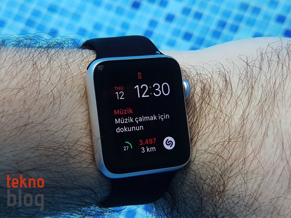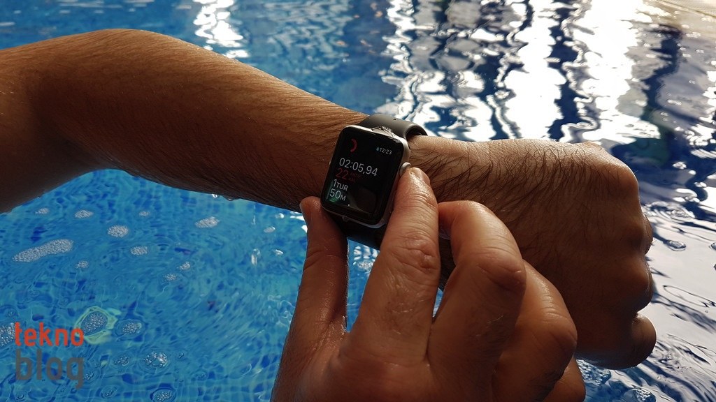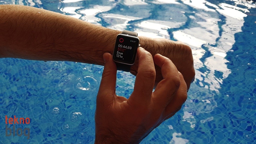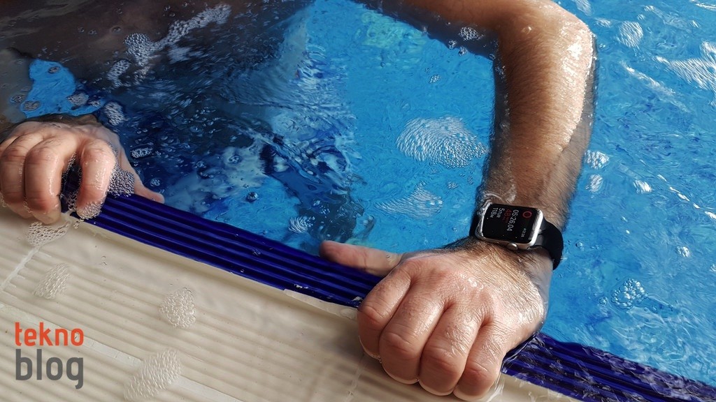 Apple Watch Series 1 su sıçramalarına karşı dayanıklıyken, Series 2 Apple’ın belirttiğine göre 50 metreye kadar derinlikte suya dayanabiliyor. Bu kadar derin suda dayanıklılığı test etmek mümkün değil, ancak Apple Watch 2 ile havuzda rahatlıkla yüzebileceğinizi söyleyebiliriz. Antrenman uygulamasına eklenen havuzda ve açık suda yüzme seçenekleri sayesinde yüzme antrenmanlarınızın kayıtlarını, kat edilen mesafe, yakılan kalori gibi bilgiler eşliğinde tutabilirsiniz. Antrenman sırasında Apple Watch 2’nin ekranı devre dışı bırakılıyor, böylelikle Watch suya temas ettiğinde ekranda istenmeyen yerlere girilmesi veya arzu edilmeyen komutların verilmesi engelleniyor. Antrenman bittiğinde Digital Crown’u çevirerek, saatin yaydığı farklı frekanslardaki ses eşliğinde hoparlöre giren suyu da boşaltabilirsiniz.