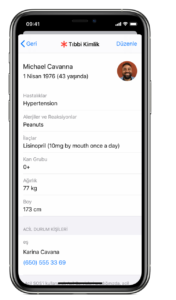 Kolaylıkla oluşturulan Tıbbi Kimlik, ilk müdahale ekiplerinin alerji ve tıbbi durumlar gibi kritik önem taşıyan tıbbi bilgilerinize iPhone’unuzun Kilit ekranından ya da Apple Watch’unuzdan anında erişim sağlamasına imkan vererek acil durumlarda büyük fark yaratabiliyor. Sağlık uygulamasında Tıbbi Kimlik’i nasıl ayarlayacağınızı buradan
