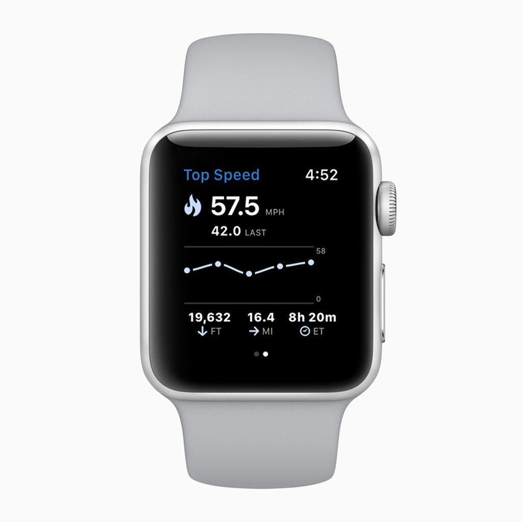 Uygulamalar otomatik olarak duraklayıp devam edebiliyor ve kullanıcılar Aktivite halkalarını bu uygulamalarla tamamlayabiliyor. Antrenman bilgileri, kullanıcının izin vermesi halinde iPhone’daki Sağlık uygulamasına da kaydediliyor. Kullanıcılar kayma verilerini takip etmek için sadece Siri’yle konuşarak Slopes ve snoww uygulamalarını başlatabiliyor.