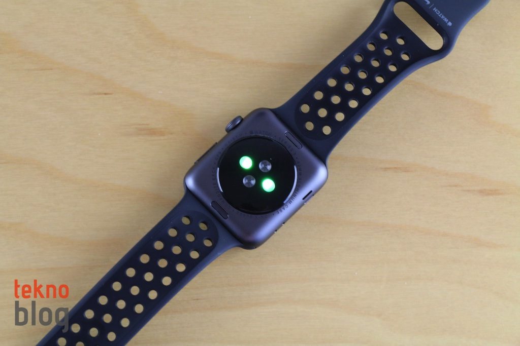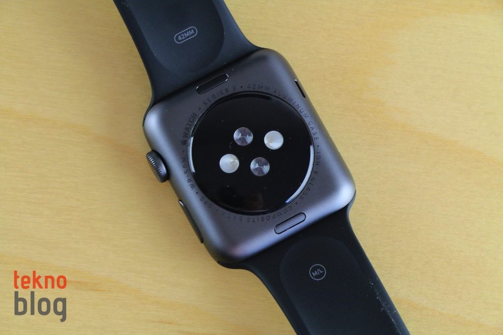 Apple Watch’un iç tarafında kalp hızı ölçümünü sağlayan sensörler bulunuyor. Kasanın üst ve alt kenarlarının hemen bitişiğinde yer alan düğmeler ise kayış parçalarını çıkarmak için kullanılıyor. Apple Watch Series 3 ile yeni kayış seçenekleri geliyor. Bunların arasında en çok hoşuma giden ise Spor Loop oldu. Kolay ayarlanan cırt cırtlı, yumuşak ve nefes alabilir naylon örme yapısı sayesinde Spor Loop spor yaparken daha rahat etmemi sağladı. Daha önce Nike’ın spor kordonunu veya klasik lastik spor kordonu tercih ediyordum. Spor Loop’tan sonra o tercihler arkaya itilmiş oldu. Spor Loop’un bir olumsuz yanı var, o da saati şarj etmek istediğimde, kayışın en azından bir ucunu çıkarmam gerekiyor.